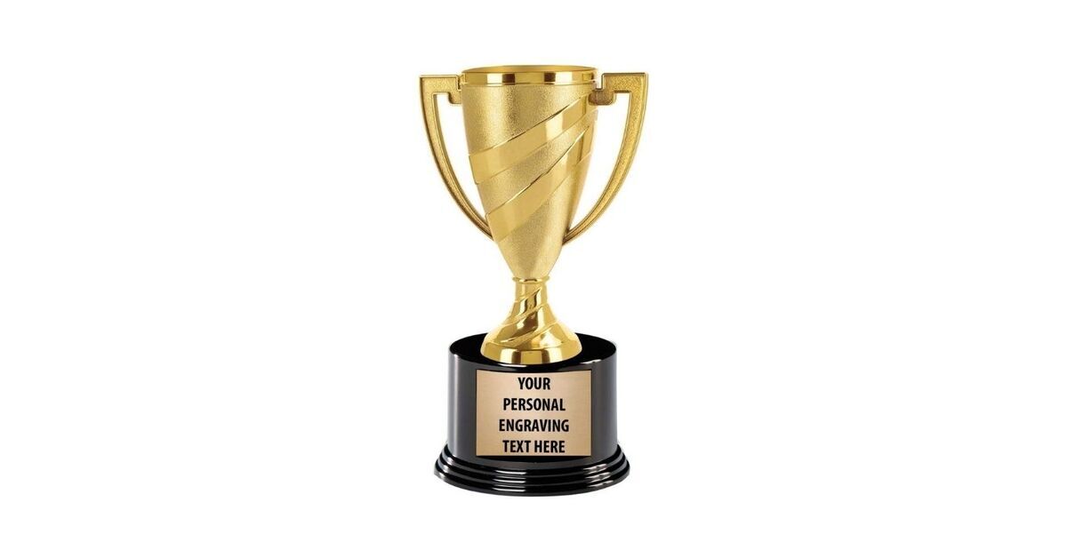 - Best Overall: Crown Awards Gold Cup Trophies with Custom Engraving – $9.99