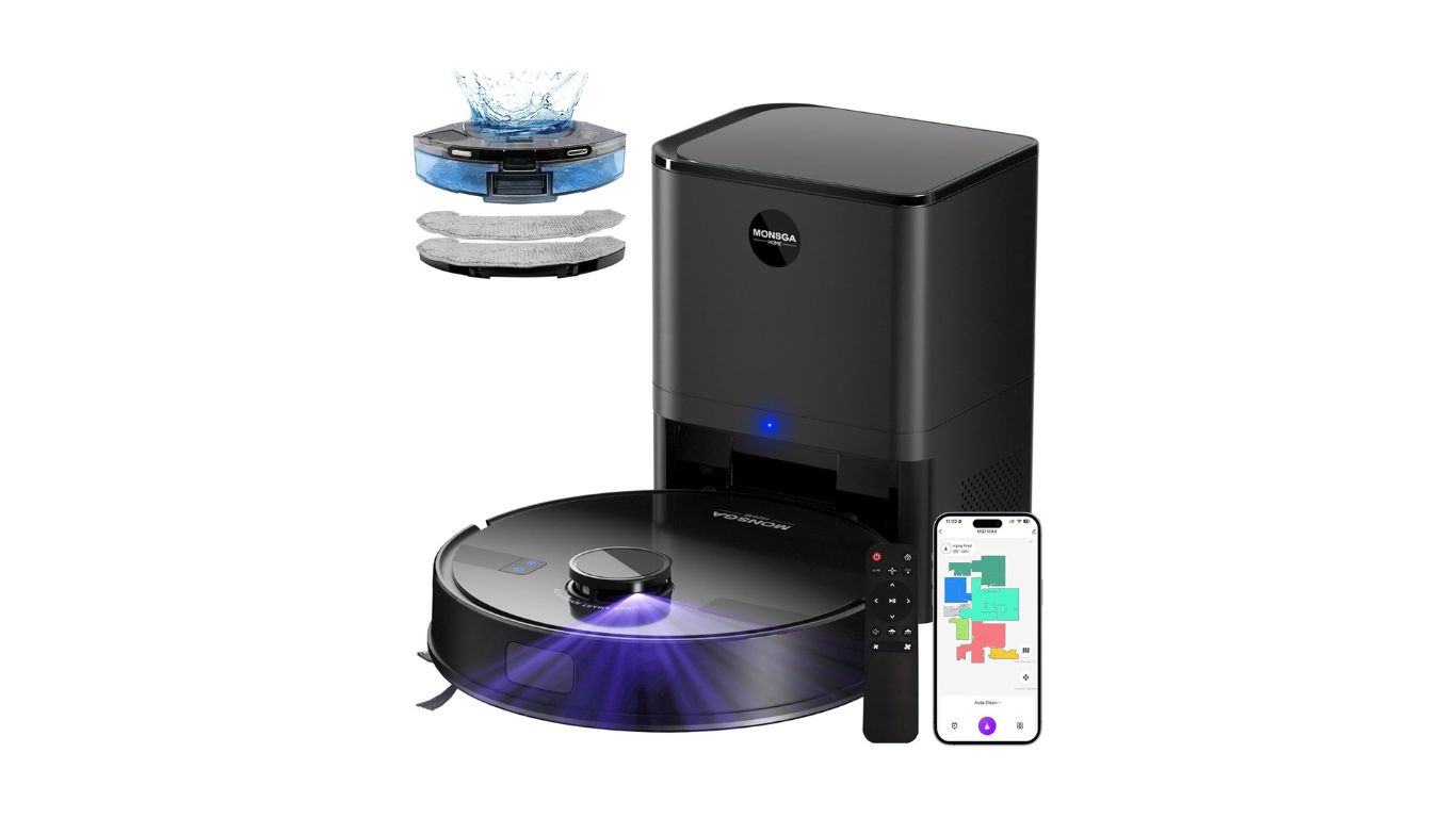 - I’ve been using the MONSGA MS1 MAX for a few weeks now, and I can’t believe how much it has simplified my cleaning routine. The self-emptying feature is fantastic—no more messy dustbins to deal with. It navigates my home effortlessly, creating maps and avoiding obstacles. The suction power is impressive, and it handles both carpets and hard floors with ease. I love that I can control it via the app or with voice commands through Alexa.